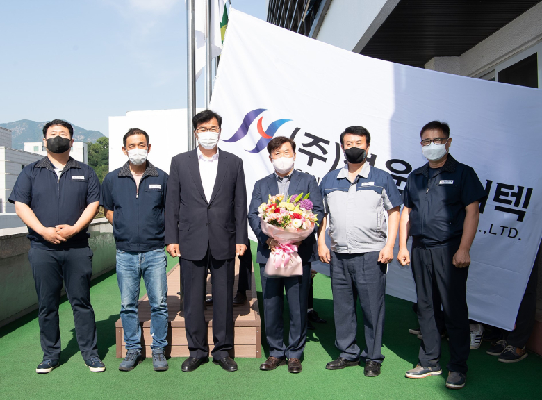 구미시는 6월 이달의 기업으로 ㈜성윤하이텍을 선정하고  2일 회사 임직원이 참석한 가운데 회사기 게양식과 유공근로자 표창을 했다.