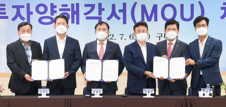 경상북도가 단일 투자프로젝트 사상 최고액의 투자양해각서(MOU)를 체결하며 민선8기 투자유치 100조원 달성이라는 목표의 본격적인 시동을 걸었다.경북도와 구미시는 6일 구미시청에서 열린 투자협약식에서 이철우 도지사, 김장호 구미시장, 정철동 LG이노텍 사장, 구자근 국회의원, 김영식 국회의원, 이희범 도 투자유치특별위원회 공동위원장 등이 참석한 가운데 1조4000억원 규모의 투자양해각서에 서명했다.LG이노텍은 최근 LG전자로부터 인수한 12만5557㎡(3만8000평) 크기의 구미A3공장 부지에서 카메라모듈과 플립칩(FC)-볼그리드어레이(BGA)를 생산할 계획으로 1000개의 직·간접 일자리가 창출되는 메가톤급 프로젝트를 추진하고 있다. LG이노텍(주)의 지난해 매출액은 14조9456억원이며 영업이익은 1조2642억원에 이른다.