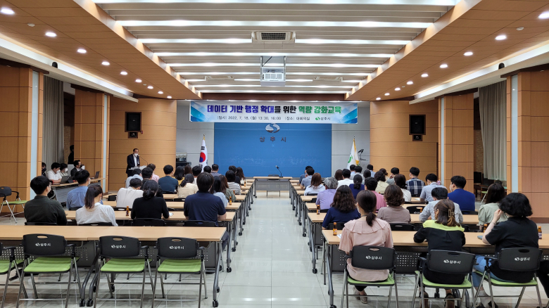 상주시는 지난 18일 시청 대회의실에서 데이터를 기반으로 한 행정 실현을 위해 공공데이터 담당 직원 100여명을 대상으로 2회에 걸쳐 ‘데이터 기반 행정 확대를 위한 역량 강화교육’을 실시했다. 2020년 12월부터 데이터기반행정 활성화에 관한 법률(약칭:데이터기반행정법)이 시행됨에 따라 상주시는 지역 실정에 맞는 실행계획을 수립하기 위하여 데이터 활용 기본계획을 수립 중이며, 이에 맞추어 직원 역량 강화를 위하여 교육을 실시했다. 이날 교육은 외부전문가인 ㈜이엠맵정보 임상현 연구소장의 강의로 빅데이터․메타버스 등 4차 산업혁명, 데이터기반행정법에 대해 설명하고, 태양광 발전 최적지 도출, 지역축제 분석, 지역상권 변화 분석 등을 예시로 데이터 기반 행정 서비스를 소개했다. 김재동 공보감사담당관은 “디지털 전환이 가속화되면서 공직자들의 데이터 기반 선제적 의사결정이 중요해졌다”라며 “지속적인 교육을 통해 데이터에 기반한 객관적이고 과학적인 행정 추진을 활성화하여 행정 효율성을 증대시키고 시민 삶의 질을 높일 수 있도록 노력하겠다”라고 했다.