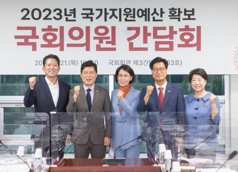 구미시 는 7월 21일 국회를 방문해 구자근, 김영식 지역구 국회의원을 만나 내년도 국비확보를 위한 간담회를 개최했다.간담회는 지역구 국회의원과 그동안의 국비확보 추진상황 공유및 기재부 정부예산(안) 확정 이후 단계별 대응 방안등  대응 방안을 함께 논의하고자 마련됐다.구미시는 지역경제 활성화로 ▲5G 특화망 기반 메타버스 산업단지 실증사업▲ 반도체 융합부품 혁신제조 플랫폼 구축▲구미상생협력지원센터건립▲구미 XR 메타버스안전산단 구축사업▲구미형 사업다각화지원 플랫폼 구축사업▲ 5G, IoA기반 표준제조 혁신공정 모듈구축▲구미 ~군위 간 고속도로▲김천JC~낙동JC 중부내륙 고속도로 확장▲봉곡지구 재해위험개선지구 정비사업 등 신규사업의 당위성과 필요성을 강조했다.