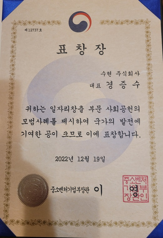 결혼정보회사 노블레스 수현(대표 경증수)이 ‘제17회 대한민국사회공헌대상’에서 사회공헌 일자리 창출 부문 중소벤처기업부장관상을 수상했다고 밝혔다.지난 19일(월) 여의도 국회의원회관에서 개최된 대한민국사회공헌대상은 일자리 창출, 사회공헌, 지역발전 등 사회발전에 공로를 널리 알리기 위해 매년 개최되고 있다. 해당 시상식은 대한민국사회공헌대상 조직위원회가 주최하고, 대한민국사회공헌재단이 주관한다.이러한 시상식에서 결혼정보회사 노블레스 수현은 대한민국 미혼남녀 성혼율 증가에 이바지하고 여성 일자리 창출 및 취업 증가에 기여한 것을 인정받아 수상의 영예를 안았다. 노블레스 수현은 커플매니저 채용을 활발히 하고 있어 여성 채용에 적극적이다. 이와 함께 초록우산 어린이재단과 업무협약을 체결해 매월 한부모가정 아이에게 후원금을 전달하는 등 사회공헌 활동도 지속하고 있다.상류층결혼정보업체 노블레스 수현 관계자는 “중소벤처기업주 장관상은 2번째 수상으로 더 영광스럽다. 노블레스 수현은 다년간 대한민국의 결혼정보업체 문화를 이끌어온 곳으로, 정직과 신뢰를 바탕으로 회사를 이끌어왔다. 앞으로도 자사는 여성 채용을 적극적으로 함과 동시에 사회책임경영을 위해 최선을 다하겠다”고 전했다.