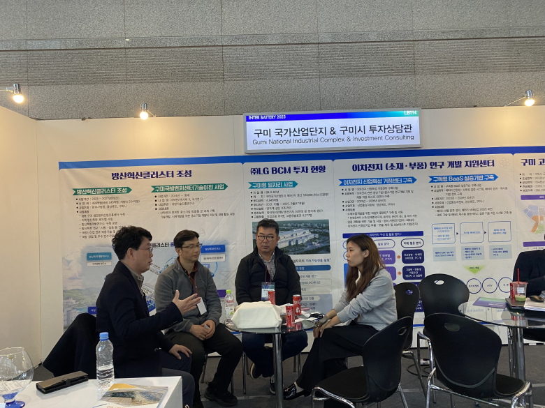 구미시는 지난 15일~17일까지 서울 코엑스에서 열린‘인터배터리 2023’에 참가해 잠재 투자유망기업 10개사와 2조원 규모의 투자 상담을 진행했다. ‘인터배터리 2023’은 산업통상자원부가 주최하고 한국전지산업협회, 코엑스, 코트라가 주관하는 국내 최대 규모의 이차전지 전문 전시회다. 올해는 477개사 참가해 6만명이 관람했으며 모바일 소형시장에서부터 에너지, 자동차 산업, 배터리 관련 다양한 신제품과 기술들이 출품됐다. 이번 전시회 동안 구미시는 국가산업단지 투자환경 인프라와 유치 전략을 발표하고 홍보관 운영 등을 통해 활발한 투자유치 활동을 펼쳤다.특히 수도권 지역 이차전지 소재·장비 분야 기업과 투자유치 상담을 진행했고 이를 바탕으로 기업체 현장 방문 및 사업계획안 검토를 통해 지역 내 유치를 구체적으로 구상할 계획이다.유경숙 기업투자 과장은 “이번 전시회를 통해 이차전지 관련 기업들을 많이 발굴하고 적극적으로 유치하여 구미시가 경제 활성화뿐만 아니라 미래 먹거리 첨단 산업의 선두주자가 될 수 있도록 최선을 다하겠다”고 했다.