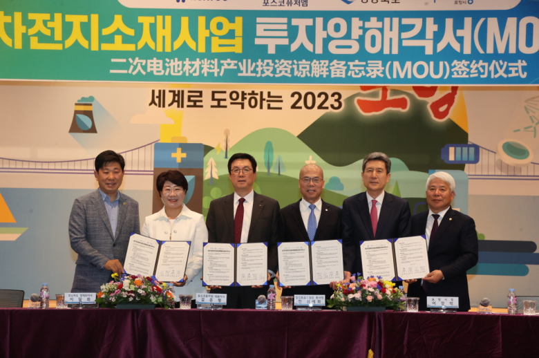 포항시는 올해에도 이차전지 소재 분야 대규모 투자유치가 이어지면서 지역 경제 대도약의 계기를 마련한 것은 물론 이차전지 특화단지의 최적지임을 입증하고 있다고 3일 밝혔다. 포항시와 경상북도는 3일 시청 대회의실에서 포스코퓨처엠·중국 절강화유코발트와 1조 2000억 원, 포스코퓨처엠과 5000억 원 규모의 투자협약을 각각 체결했다. 협약식에는 이강덕 포항시장, 백인규 포항시의회 의장, 이달희 경북도 경제부지사, 박용선 경북도의회 부의장, 김준형 포스코퓨처엠 대표이사, 천쉬에화 절강화유코발트 회장 등이 참석했다. 이번 협약에 따라 포스코퓨처엠과 절강화유코발트는 신규 합작법인을 설립해 포항 블루밸리 국가산단에 올해 공장 착공을 목표로 2027년까지 총 1조 2000억 원을 투자해 니켈정제 및 전구체를 생산할 계획이다. 전구체는 배터리의 출력과 용량 등 성능을 좌우하는 핵심 소재인 양극재의 원재료로, 양극재 원가의 약 70%를 차지할 정도로 배터리 제조에 큰 비중을 차지한다. 절강화유코발트는 2002년 설립한 중국 최대 코발트 생산기업이자 세계 TOP 3위의 전구체 생산기업으로 니켈, 코발트 등 원자재 채굴부터 배터리 소재 및 재활용·재사용까지 수직계열화를 구축하고 있다. 또한, 포스코퓨처엠은 블루밸리 국가산단에 앞서 1단계로 약 3500억 원을 투자해 연 1만 8000톤의 인조흑연 음극재 생산공장을 건설하고 있으며, 이번 협약을 통해 추가로 2025년까지 5000억 원을 투자해 인조흑연 음극재 생산공장을 증설할 계획이다. 이와 함께 영일만산단에는 총 1조 3000억 원을 투자해 연산 10만 6000톤의 하이니켈 양극재 생산공장을 건설 중이다. 포스코퓨처엠은 국내에서 유일하게 양극재와 음극재를 모두 생산하는 이차전지소재 세계적인 선두 기업으로 2030년까지 연산 양극재 61만 톤, 음극재 32만 톤의 글로벌 생산능력을 갖출 계획이다. 특히, 시는 이외에도 올해에만 포스코실리콘솔루션 실리콘 음극재 3000억 원, 포스코 이차전지용 산소플랜트 1000억 원, 동국산업 이차전지 케이스용 니켈도금강판 생산설비 1100억 원을 투자 유치했으며, 에코프로 블루밸리캠퍼스(가칭) 2조 원 투자가 확정되면 이차전지 분야에만 총 5조 원에 달하는 대규모 투자유치를 달성하게 된다. 포항은 이렇듯 포스코퓨처엠, 에코프로, 에너지머티리얼즈, 효성 등 앵커기업을 필두로 포스코실리콘솔루션, 미래세라텍, 피엠그로우, 뉴테크에너지 등 중소기업과 더불어 이차전지 상생 협력 생태계를 구축하고 있다. 아울러, 항만과 공항, 철도 등 사통팔달 입지를 비롯해 이차전지종합관리센터 등 이차전지 전문 연구기관과 교육기관이 집적해 있어 초격차의 경쟁력을 갖춘 글로벌 배터리 선도도시로 도약에 속도를 내고 있다. 이강덕 포항시장은 “포스코퓨처엠과 절강화유코발트의 이번 투자는 포항지역 경제의 혁신적인 대도약의 기반이 될 것”이라며, “선제적인 노력과 축적된 역량을 바탕으로 구축한 배터리 소재 생산에서 재활용·재사용까지의 밸류체인 완성과 함께 올해만 5조 원에 이르는 이차전지 분야 투자유치 성과는 포항시가 ‘이차전지 특화단지의 최적지’이자 ‘이차전지 소재 분야 글로벌 허브 도시’임을 다시 한번 증명한 것”이라고 강조했다.