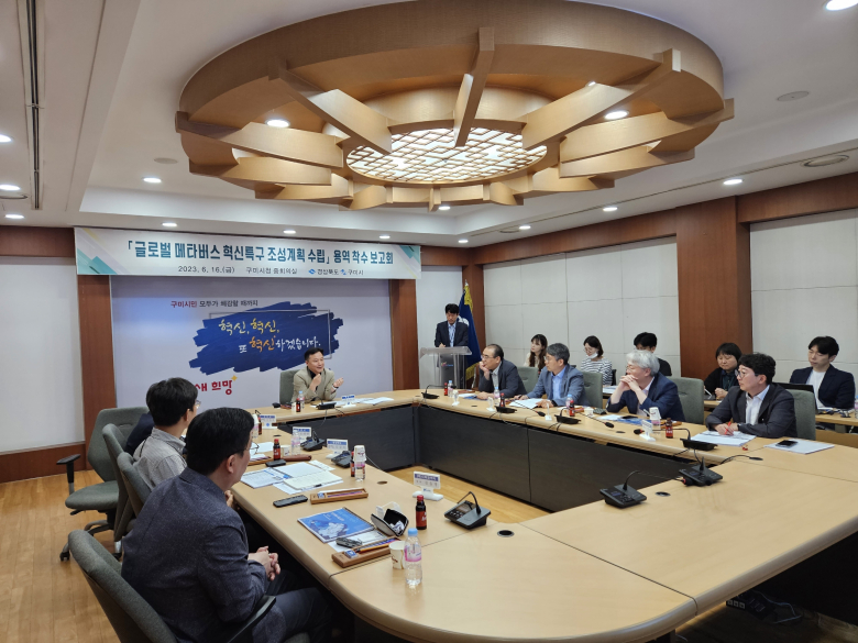 구미시는 지난 16일 시청 중회의실에서 경북도 관계자 및 관련기관 전문가가 참석한 가운데 ‘글로벌 메타버스 혁신특구 조성계획 수립’ 용역 착수 보고회를 개최했다.용역보고회는 성장성과 파급력이 막강한 메타버스 산업을 중심으로 구미에 혁신 특구를 조성하고, 이를 기반으로 혁신 기업 유치와 더불어 디지털 산업을 선도하는 글로벌 산업도시로 성장하기 위한 방안으로 마련됐다.이날 보고회에서 메타버스 대내외 환경분석과 사업추진 계획을 바탕으로, 지역 관련 전문가들의 의견 수렴을 통해 앞으로의 용역 추진방향과 추진전략 등을 논의했다.글로벌 메타버스 혁신 특구 조성을 위한 사업은 ▲인프라 조성 ▲테스트베드 구축 R&D ▲산업육성 등 전략분야별 세부 사업계획 및 추진 로드맵 수립으로  메타버스 전문가위원회 운영 및 기업 수요조사를 통해 타당성 및 실효성을 강화할 예정이다.