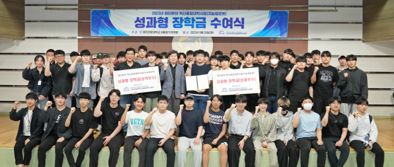 영진전문대학교 ‘첨단분야 혁신융합대학 지능형로봇 사업단’(이하 지능형로봇 사업단)은 이 사업에 참여하고 있는 재학생 130명에게 ‘성과형 장학금’을 수여했다고 27일 밝혔다.지난 26일 이 대학교 도서관 시청각실에서 가진 장학금 수여식엔 지능형로봇 사업단이 개설한 신기술 교육과정을 이수해 ‘마이크로디그리’를 획득한 우수 교육생 20명과 지난 하계방학 중 한국연구재단이 주최한 ‘CO-Week 아카데미’에 참가해 신기술분야 강좌 교과목을 이수한 110명 등 AI융합기계계열 재학생 총 130명이 총액 5000만원의 장학금을 받았다.‘첨단분야 혁신융합대학’사업은 대학 간 경계를 허물고, 학과 간의 벽을 넘어 전공과 관계없이 학생이라면 누구나 원하는 첨단 분야의 교육을 수강할 수 있도록 13개의 첨단 분야를 선정했다.2021년부터 6년간 각 분야별로 매년 110억 원 이상을 지원하는 이 사업은 컨소시엄별로 4년제 대학 6개교와 전문대 1개교로 구성됐는데, 영진전문대는 전체 13개 분야 중 지능형로봇, 인공지능, 반도체소부장 등 총 3개 사업에 선정됐다. 이는 전국 전문대 가운데 최다이자 유일하게 3개 분야 참여다.안상욱 지능형로봇사업단 단장은 “매년 우수 평가를 받고 있으며 지원받은 국고를 통해 첨단분야 교육을 위한 교육환경 개선, 각종 첨단장비를 도입하여 학생들의 내실 있는 교육과 기업 현장에서 원하는 현장전문가 양성을 위해 매진하고 있다”고 했다.한편 이 대학교는 또한 작년에 이어 올해도 ‘ICROS(제어로봇시스템학회) 학술대회’에서 학부생 논문경진대회에 전문대학 가운데 유일하게 참가하여 매년 우수논문상을 수상하여 단순히 기술인을 양성하는 것을 넘어 학술분야에 있어서도 귀감이 되고 있다.