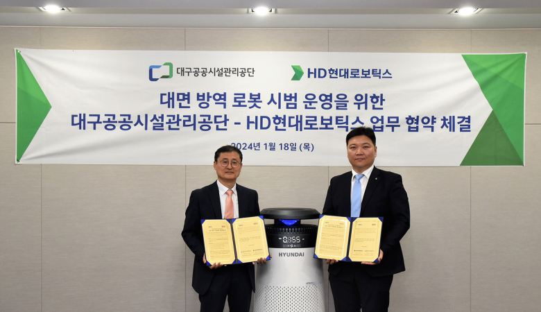 대구공공시설관리공단(이하 공단)이 지난 18일 달성군 유가읍에 위치한 HD현대로보틱스 본사에서 개방형 혁신 업무협약을 맺었다.이번 협약은 양 기관이 가진 자원과 신기술을 공유하고 협업 네트워크를 통해 연구과제 발굴과 플랫폼 구축을 위해 체결됐다.공단은 지하상가 등 다양한 공공시설과 도시 인프라를 관리‧운영하고 있으며 로봇 산업의 앵커기업인 HD현대로보틱스는 최근 본사를 대구로 이전한 바 있다.대면 방역 로봇 시범운영을 위한 협약으로 공단과 HD현대로보틱스는 ▲지하상가 시설을 활용한 자율주행 방역 시스템 개발 및 검증 테스트베드 제공 ▲기술·제품 상용화를 위한 양 기관 피드백 제공 ▲실증완료 후 혁신제품 조달청 구매 신청 지원 등을 공동 추진한다.공단 사업지원처 관계자는 “혁신기술개발실증으로 자율주행 방역로봇 기술, 플라즈마 공기정화 기술, UVC LED 살균기술 등의 개발과 상용화, 지역상생 등의 시너지 효과를 기대하고 있다”고 말했다.문기봉 공단 이사장은 “공단은 기업이 개발한 기술과 제품을 실증하기에 좋은 인프라를 갖추고 있다”며 “공단의 인력, 장비, 기술을 지역 및 서비스 개발을 위해 적극 개방해 대구지역 기업 발전에 기여하겠다”고 밝혔다.
