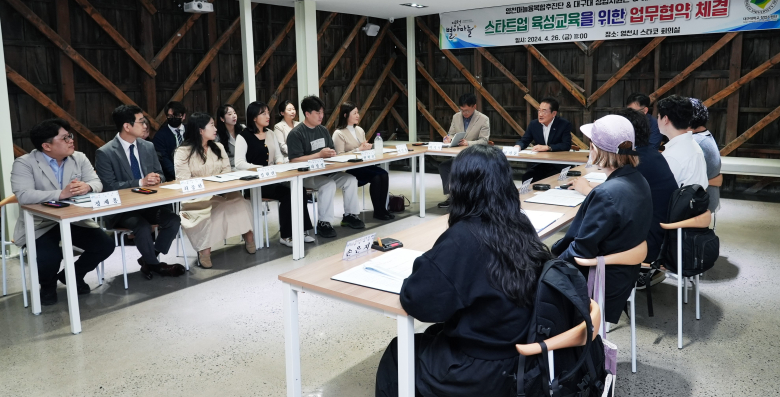 영천마늘농촌융복합사업추진단은 지난 26일 스타코 회의실에서 대구대학교 창업지원단, 스타트업육성 교육생(예비·초기창업자) 10명과 영천별아마늘을 활용한 스타트업 육성 교육을 위한 협약을 체결했다.청년창업지원을 위한 이번 협약 체결은 2022년 농림축산식품부 공모사업으로 선정된 영천마늘 농촌융복합지구 조성사업의 세부사업으로, 교육이 끝나면 선발을 통해 영천마늘융복합센터의 청년몰에 입주하게 될 예정이다.협약대상인 예비 및 초기 창업자는 총 10명으로 영천별아마늘을 활용해 마늘오란다, 마늘디저트, 마늘갈비밀키트, 마늘스틱 등 다양한 아이템을 구상하고 있으며 스타트업 교육을 통해 제품화할 계획이다.스타트업 육성 교육은 대구대학교 창업지원단에 위탁해 운영되며 기간은 2024년 5월부터 2025년 3월까지이다. 교육 내용은 청년 창업을 위한 스타트업 마스터링, 마늘산업 특화프로그램, 성장플러스지원(1200만원/1인) 등 창업에 필요한 실전 교육을 포함하고 있다.최기문 영천시장은 “영천마늘을 활용한 다양한 아이템으로 청년창업이 성공할 수 있기를 기대한다”며 “청년들이 최종 목표를 이룰 수 있을 때까지 영천시가 든든한 지원군이 되겠다”고 전했다.