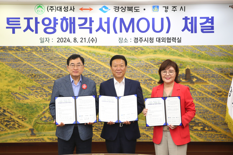 경북도와 경주시는 21일 ㈜대성사와 경주시청에서 양금희 경북도 경제부지사, 주낙영 경주시장, ㈜대성사 허부걸 대표이사 등이 참석한 가운데 자동차용 차체 부품 생산공장 건립을 골자로 하는 투자양해각서를 체결했다.이번 투자협약으로 ㈜대성사는 2026년까지 경주시 구어2일반산업단지내 3만6896㎡ 부지에 1100억원을 투자해 핫스탬핑 공정을 이용한 전기차 플랫폼 등 자동차용 차체 부품을 생산하는 공장을 건립하고 100여명의 새로운 일자리를 창출한다.1968년에 창업해 반세기가 넘는 사업경력을 보유한 ㈜대성사는 현대자동차의 첫 조립 차량인 1969년 코티나 부품 공급을 필두로, 포니, 엘란트라, 소나타, 투싼, 코나, 펠리세이드, 넥소, 아이오닉5, GV60까지 현대차의 거의 모든 차량에 부품을 공급해 온 알짜 기업이다.