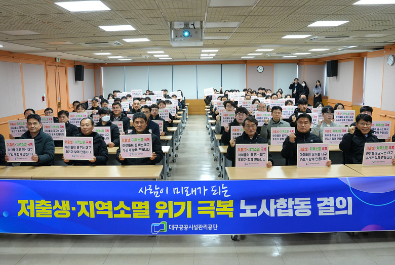대구공공시설관리공단(이하 공단)이 지난 6일 공단 본사 8층 대강당에서 저출생·지역소멸 극복을 위한 결의대회를 가졌다.이번 결의대회는 국가적 사회 문제인 저출생·지역소멸 위기 대응에 적극 동참하고 지역소멸의 발생 요인이라고 할 수 있는 저출생 위기에 대한 심각성을 공유하고 공단 전체가 전사적으로 앞장서자는 취지에서 열렸다.특히 저출생·지역소멸의 심각성과 극복 중요성을 강조하기 위해 샌드아트 퍼포먼스를 시행하기도 했다.공단은 지난해 11월 저출생·지역소멸에 선제적으로 대응하기 위해 전담 TF단을 구성해 운영하고 있으며 3개 분야(정책·제도·일가정 양립)에서 ▲다자녀가구 인사평가 가점부여 ▲상생형 공동 직장 어린이집 운영 및 출산직원 육아용품 지원 ▲경북 산하기관들과의 협의체 구성과 정기회의 개최 및 대구시 산하기관 공동대응 업무협약 체결 등 실용적이면서 공감대 높은 결실들을 이뤄냈다.문기봉 공단 이사장은 “저출생·지역소멸은 현재 국가적으로 당면한 사회 문제이자 국가의 미래와 직결되는 대단히 심각한 문제다”며 “공단은 2024년도 실적에 안주하지 않고 저출생·지역소멸 극복을 최우선 과제로 삼아 더욱 다양하고 나은 정책들이 실현될 수 있도록 전사적으로 노력하겠다”고 말했다.