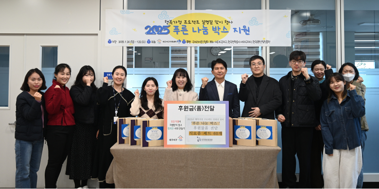 한국로봇산업진흥원(이하 진흥원)이 지난 23일 대구서구가족센터를 방문해 설 명절 맞이 행복 가정 프로젝트 ‘푸른 나눔 박스’에 동참했다.이번 ‘푸른 나눔박스’ 프로젝트를 통해 대구 지역 내 취약계층과 저소득 가정에게 설 명절 선물 60세트(식료품 선물세트)가 지원된다.강철호 한국로봇산업진흥원장은 “공공기관으로서 지속적인 사회공헌활동을 통해 지역사회 상생과 사회적 책임 실천에 앞장서겠다”고 말했다.한편 한국로봇산업진흥원은 2021년부터 대구서구가족센터 함께 지역 소외계층을 위해 물품 지원을 하는 등 사회공헌활동을 지속적으로 추진하고 있다.