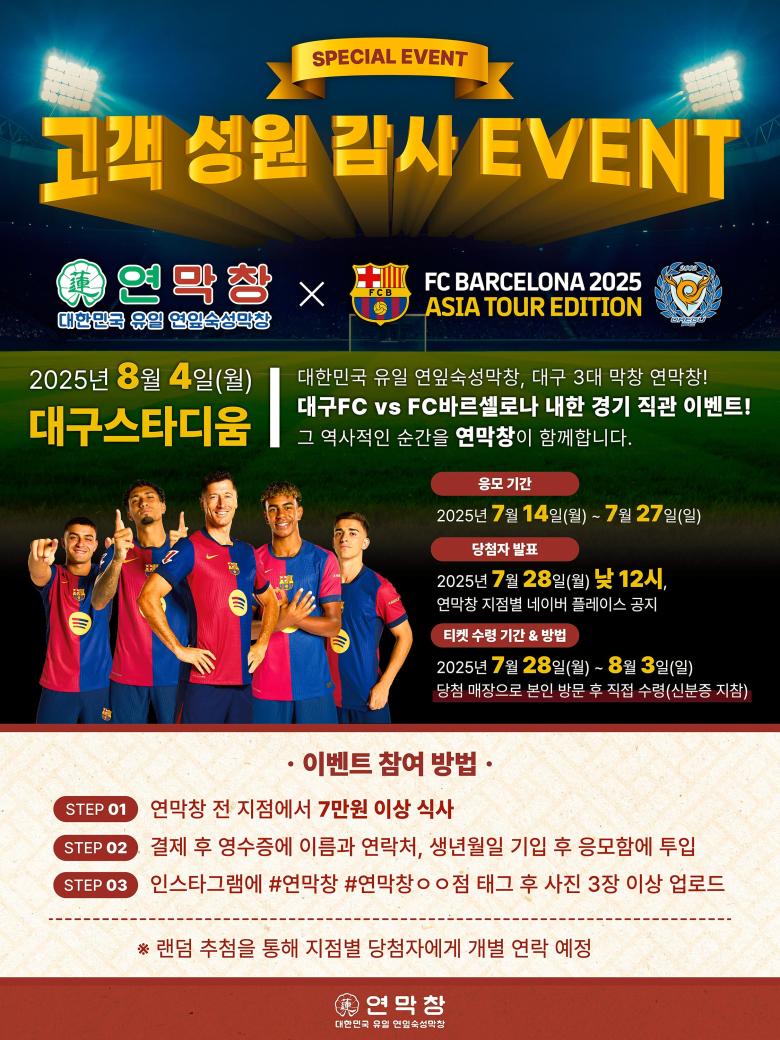 양 대표는 “실무 교육과 멘토링이 성공의 핵심”이라며 아카데미의 효과를 강조했다.연막창은 브랜드 성장뿐 아니라 지역사회와의 상생에도 적극 나선다. 오는 8월 4일 열리는 대구FC와 FC 바르셀로나 친선경기에 특별 후원사로 참여해 지역 스포츠 문화에도 기여할 계획이다.이재훈 외식창업 키워드림 아카데미 담당 교수는 “이번 성과는 교육의 현장성과 지역 밀착형 창업 지원 시스템이 만들어낸 결실”이라며 “앞으로도 실전 중심 창업 교육과 멘토링을 더욱 강화해 청년 창업가들의 성공을 적극 뒷받침할 것”이라고 말했다.