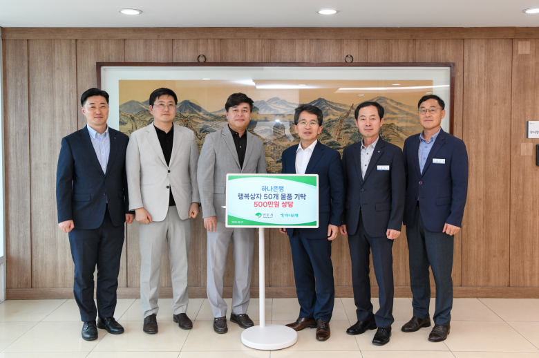 영주시는 7일, 하나은행(대표자 이호성)에서 지역 내 저소득 취약계층을 위한 ‘사랑의 행복상자’ 50세트(500만 원 상당)를 기탁했다고 밝혔다.이날 기탁식에는 소기호 하나은행 영주지점장과 대구경북기관영업부 전병완 부장 등 하나은행 관계자들이 참석했으며, 영주시에서는 유정근 영주시장 권한대행이 함께해 감사의 뜻을 전했다.기탁된 행복상자에는 수건, 담요, 손 선풍기, 여행용품, 응급키트, 양말, 비타민, 슬리퍼, 에너지바 등 10만 원 상당의 실생활 필수품 9종이 포함됐다.시는 기탁 받은 물품을 읍·면·동 행정복지센터를 통해 한부모 가정, 조손 가정 등 기초생활수급자 및 차상위계층 50세대에 소중히 전달할 예정이다.소기호 지점장은 “이번 행복상자가 어려운 여건 속에서도 묵묵히 일상을 살아가는 분들게 작지만 큰 위로가 됐으면 한다”며 “앞으로도 하나은행은 지역사회와 함께 성장하며 행복을 나누는 사회적 책임을 다하는 금융기관이 되도록 노력하겠다”고 말했다.유정근 영주시장 권한대행은 “지역 내 취약계층을 위해 따뜻한 마음을 전해주신 하나은행에 깊은 감사를 드린다”며 “기탁해 주신 물품은 도움이 필요한 분들께 잘 전달해 시민 모두가 함께 누리는 희망복지도시 영주를 만들어가겠다”고 밝혔다.한편, 하나은행은 전국 각 지역에서 다양한 사회공헌활동을 통해 지역사회와 상생하는 금융문화를 조성하고 있으며, 앞으로도 꾸준한 나눔 실천을 통해 더불어 사는 사회를 만들어가는 데 앞장설 계획이다.