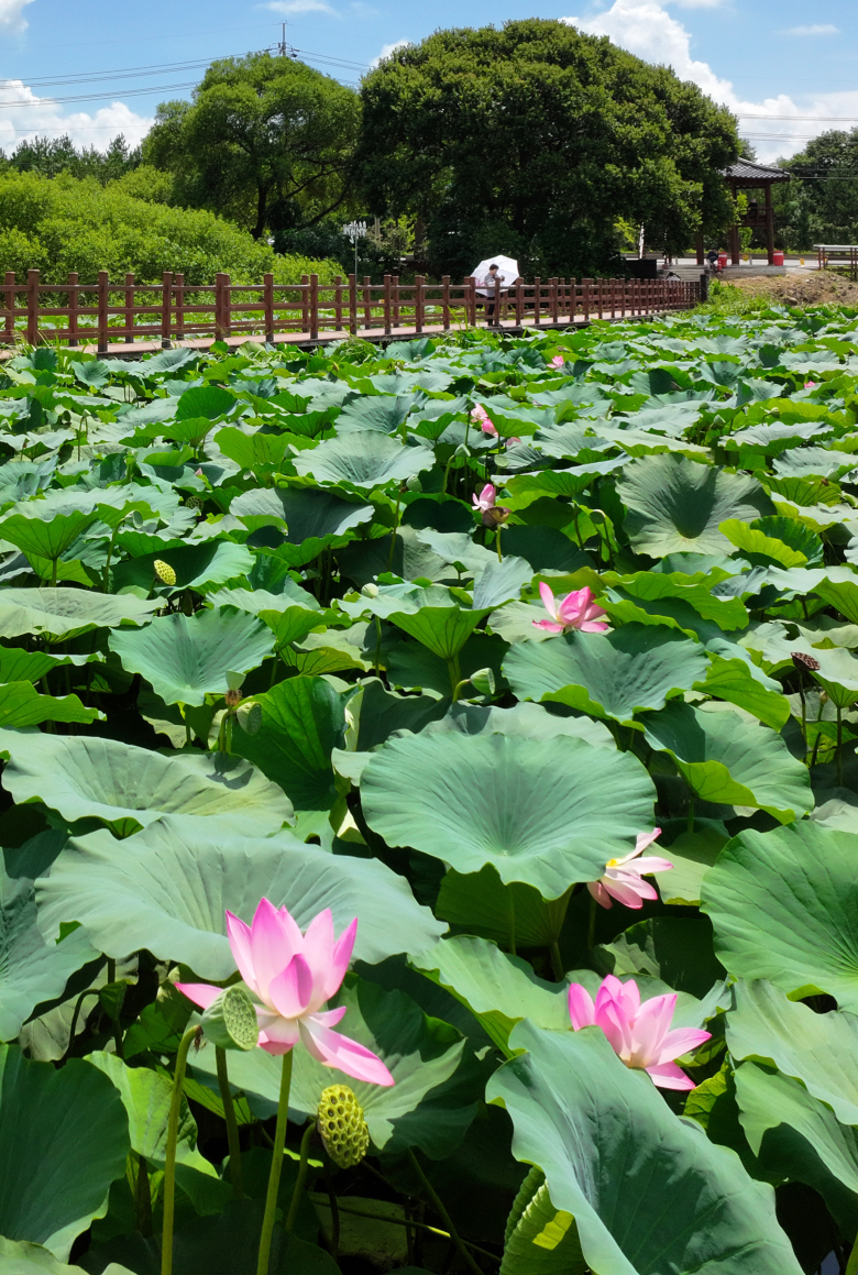 19일 전남 나주시 공산면 우습제에서 한 시민이 연꽃을 감상하고 있다. 연합