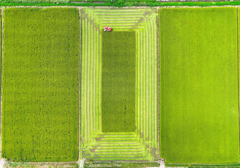 25일 강원 철원군 철원읍 사요리의 논에서 농민 이영상 씨가 지역 첫 추수를 하고 있다. 연합