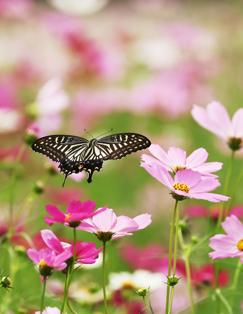 9일 경기도 수원시 권선구 탑동시민농장에서 호랑나비가 활짝 핀 코스모스 사이를 분주하게 날아다니고 있다. 연합