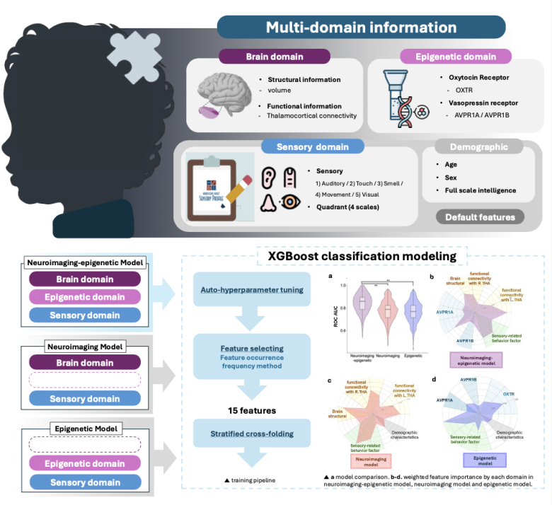 한국뇌연구원이 인지과학 연구그룹 정민영 선임연구원과 일본 후쿠이 의대 Kosaka Hirotaka 교수 공동연구팀이 인공지능(AI)과 최신 뇌영상 분석 기술을 활용해 자폐 스펙트럼 장애(ASD) 환자의 감각이상을 설명할 수 있는 새로운 생물학적 지표(바이오마커)를 규명했다고 9일 밝혔다. 이번 연구 성과는 국제학술지 'Translational Psychiatry' 최신호에 게재됐다.연구팀은 행동 특성, 뇌 구조 및 기능 영상, 후성유전학적 지표 등 세 가지 데이터를 통합해 AI 기반 분석을 시도했다. 국내·외 ASD 환자군과 정상 대조군 총 106명을 대상으로 진행한 결과, ‘시상(thalamus)’과 대뇌 ‘피질(cortex)’ 사이의 연결성이 ASD 환자에서 과잉연결(hyperconnectivity)을 보이는 경향이 뚜렷하게 나타났다. 이는 ASD 환자의 뇌가 외부 감각 정보를 처리하고 전달하는 과정에서 과도하게 활성화돼 있을 가능성을 시사한다.또 AI 기반 영상유전학 분석을 통해 기존에 ‘사회성 호르몬’으로 알려진 옥시토신 유전자보다 ‘바소프레신 수용체 유전자’의 후성유전적 변화가 ASD 환자의 감각적 특징을 분류하는 데 더 큰 영향을 미친다는 사실도 새롭게 밝혀냈다.연구팀은 뇌영상 데이터와 후성유전자 데이터를 통합한 ‘뇌영상-후성유전자 통합 모델’이 단일 데이터만 사용한 모델보다 자폐 스펙트럼 장애를 훨씬 더 높은 정확도로 분류할 수 있다고 설명했다.정민영 선임연구원은 “이번 연구는 자폐 스펙트럼 장애의 복잡한 특성을 이해하기 위해 다차원적 생물학 정보를 AI로 통합 분석해 핵심 바이오마커를 규명한 것”이라며 “정확한 조기 진단을 통해 ASD 아동의 언어·사회성 발달에 긍정적 효과를 기대할 수 있다”고 말했다.이번 연구는 한국뇌연구원 기관고유사업과 한국연구재단 바이오의료기술개발사업 및 기초연구사업의 지원으로 수행됐다. 연구 결과는 AI 기술이 정신의학과 신경과학 분야에서 활용될 수 있는 가능성을 보여주는 대표적 사례로 평가된다.