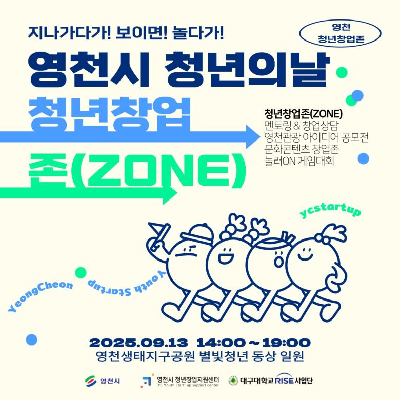 영천시 청년창업지원센터는 11일까지 ‘2025 영천 문화관광 창업 아이디어 공모전’ 사전 신청 참여자를 모집한다고 밝혔다. 체험형 관광 서비스, 디지털 관광콘텐츠, 로컬 크리에이티브 굿즈, 숙박·체험 패키지 및 여행코스 개발 등 다양한 관광 관련 분야 아이디어 10건 내외를 모집하며 창업 3년 이내 영천의 기업 및 청년 누구나 신청할 수 있다. 1차 서류심사 후 이달 13일 영천생태지구공원에서 펼쳐지는 ‘청년재충전 페스타’에서 청중 심사위원과 함께 발표평가를 거쳐 우수자를 선발하며 갤럭시탭 등 상품을 수여하고 전문가 멘토링 기회를 제공한다.공고문 등 자세한 내용은 영천시 청년창업지원센터 블로그(https://blog.naver.com/ycstartup2024)에서 확인할 수 있다.한편 영천시는 청년의 날을 맞아 13일 영천생태지구공원 별빛청년 동상 일원에서 ‘청년 재충전 페스타’를 개최하며 멍 때리기 대회, 초대가수 공연 등 다양한 즐길 거리와 ▲청년창업존 ▲캠크닉존 ▲청년부스존 ▲먹거리존 등 시민들과 함께할 볼거리를 준비한다.특히 청년창업지원센터가 운영하는 청년창업존에서는 멘토링, 창업 상담, 문화콘텐츠 창업 이벤트, 게임대회 등 청년창업자와 시민을 위한 알찬 정보를 마련하고 다양한 이벤트를 통해 경품을 제공할 예정이다.