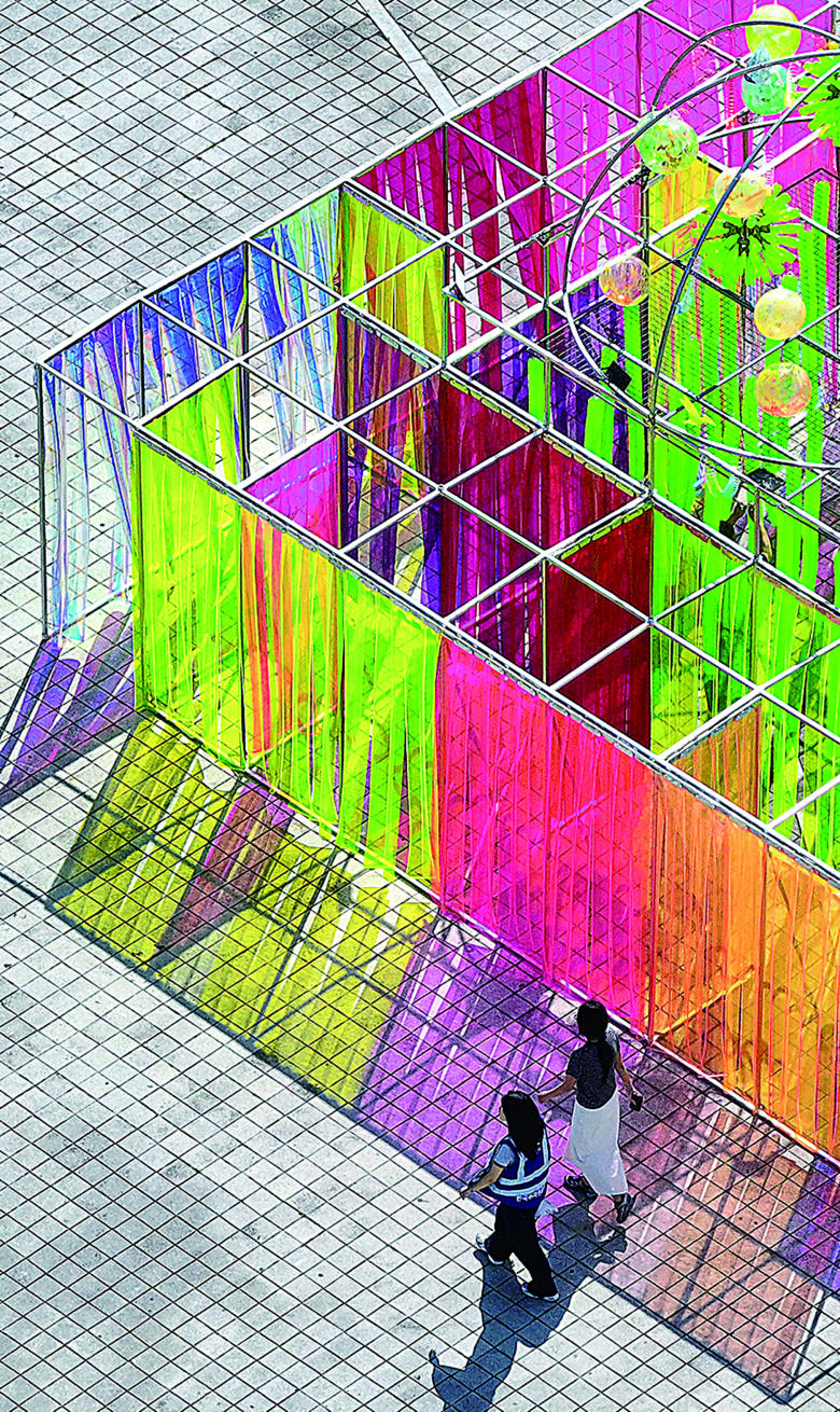 16일 대구 달성군 강정보 디아크광장에서 열린 '2025 달성 대구현대미술제'에서 시민들이 작품을 살펴보며 산책을 즐기고 있다. 연합