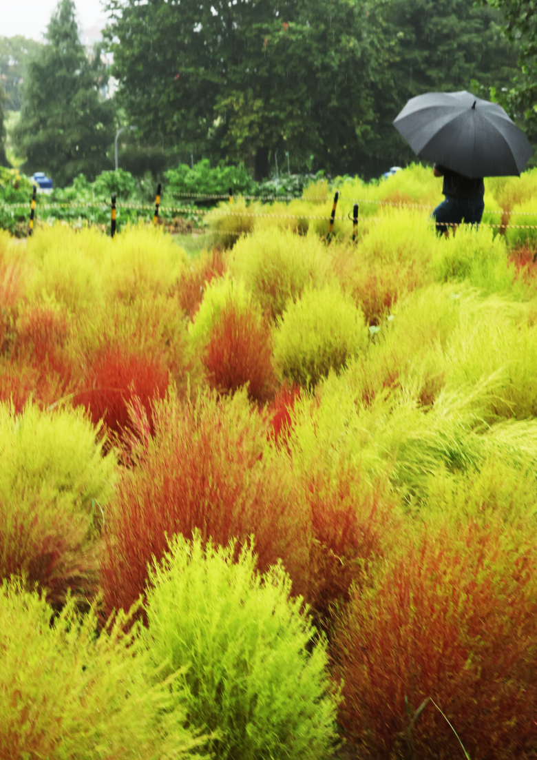 가을을 재촉하는 비가 내린 17일 경기도 수원시 권선구 탑동시민농장에 댑싸리가 붉게 물들어가고 있다. 연합