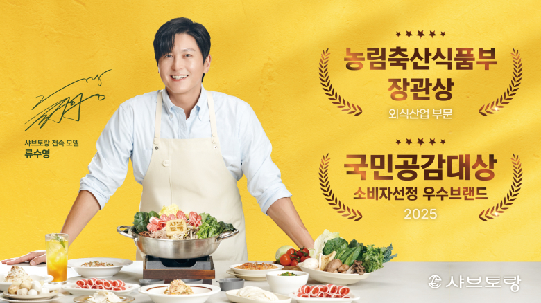 제이테이블의 샤브샤브 전문 브랜드 ‘샤브토랑’이 농림축산식품부 외식산업 부문 장관상과 2025 국민공감대상 소비자선정 우수브랜드를 동시에 수상했다고 23일 밝혔다. 업계와 소비자의 평가를 동시에 인정받으며 브랜드의 차별성과 성장 가능성을 입증했다는 평가다.샤브토랑이 주목받은 배경에는 ‘맞춤형 한 끼’라는 브랜드 철학이 실제 매장에서 구현되며 지속 가능성과 경쟁력을 보여준 점이 있다. 1인 1냄비 방식을 기반으로 5종의 육수와 파스타·리조또·떡볶이 등 12가지 애프터디시를 자유롭게 조합할 수 있어 최소 60가지 이상의 메뉴 구성이 가능하다. 또한 닭가슴살 등 건강 지향 메뉴를 추가해 맛과 영양의 균형을 고려했으며, 이는 기존 샤브샤브 코스에서 칼국수나 계란죽으로 마무리하던 방식을 넘어 고객 선택의 폭을 넓혔다.