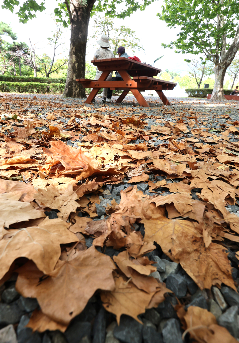 낮과 밤의 길이가 같아지는 추분인 23일 부산 부산진구 시민공원에 낙엽이 쌓이기 시작해 가을 정취를 느끼게 한다. 연합