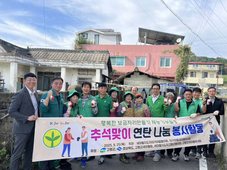 대가야읍 새마을회는 매년 관내 소외계층 가구를 위하여 주거 환경 정비 등 봉사를 통하여 새마을 정신을 이어나가고 있다.전환승 새마을지도자 회장과 김명숙 새마을부녀회장은 “조금이나마 지역 주민들에게 겨울나기에 보탬이 되길 바라며 앞으로도 지역사회에 봉사가 되는 일이라면 앞장서겠다”고 전했다.최용석 대가야읍장은 “매년 어려운 이웃을 위해 앞장서 봉사해주시는 대가야읍 새마을 회원 여러분들게 깊은 감사를 드린다. 앞으로도 지역 내 소외계층을 위해 따뜻한 관심을 부탁드린다”고 말했다.