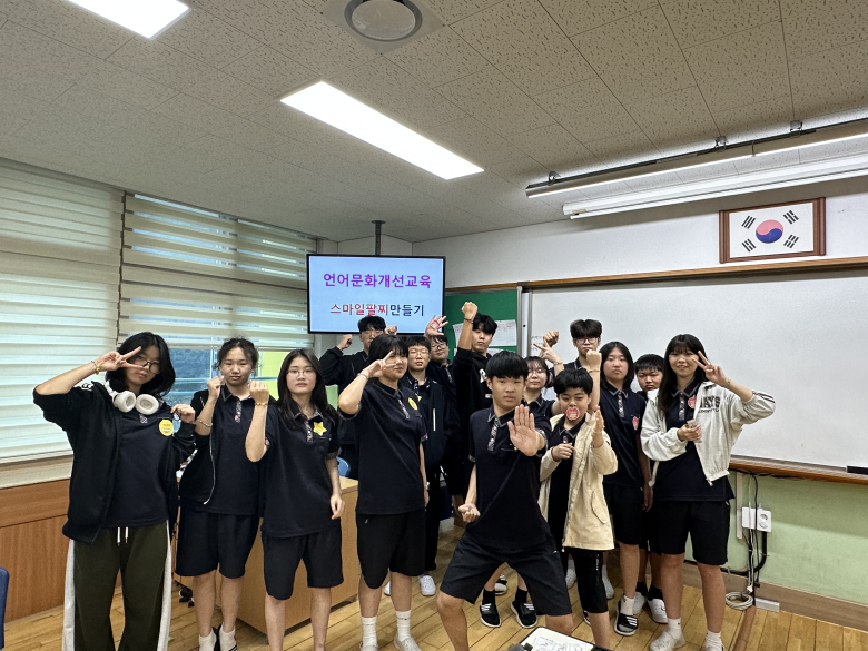 학생들은 언어개선 교육 영상을 시청하며 언어 사용의 중요성을 배우고 ‘스마일팔찌’ 만들기를 통해 서로에게 긍정적인 말을 건네는 문화를 실천했다. 또한 ‘언어다짐스티커’를 작성하며 바른 말을 쓰겠다는 다짐을 새기는 시간을 가졌다.