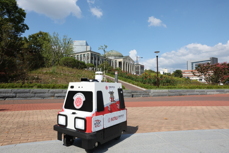 일청담 광장에 설치된 로봇 스테이션에서 출발해 일청담과 백양로 일대를 자율주행하며 순찰한다. 이동 중 사람을 만나면 속도를 줄이고 장애물이 있으면 부드럽게 피한다. 사람이 로봇 앞을 막으면 “로봇이 이동 중입니다. 로봇 주행에 주의해 주세요”라고 안내한 뒤 정지했다가 다시 이동한다. 허영우 경북대 총장은 “정부의 AI·로봇 등 첨단기술 육성 정책에 발맞춰 대학의 여러 분야에도 AI를 적극 활용할 예정"이라며 "무엇보다 학생들의 교육과 안전을 가장 중요한 가치로 두고 대학의 역량을 집중하겠다"고 말했다.