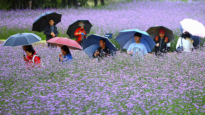 11일 강원 인제군 북면 용대관광지 일원에서 열리고 있는 '제7회 인제 가을꽃 축제'에서 관광객들이 궂은 날씨에도 아랑곳하지 않고 꽃길을 걸으며 가을 정취를 만끽하고 있다. 사진제공=인제군