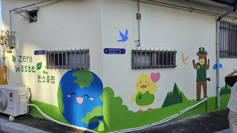 대구 달성군 현풍읍 새마을회가 탄소중립 실천을 주제로 마을 담장을 화사하게 바꾸었다.현풍읍 새마을회는 지난 21일 ‘탄소중립, 우리가 함께 만드는 푸른마을’을 주제로 벽화 그리기 활동을 진행했다. 이번 활동은 지난 4월 부2리가 새마을운동중앙회 주관 ‘좋은이웃만들기 마을공동체 공모’에 선정되며 추진된 공동체 사업의 일환이다.이날 현풍읍 새마을회를 중심으로 지역아동센터 어린이, 계명대 사랑그리기 동아리 대학생, 마을 어르신 등 약 30명이 함께 벽화를 완성했다. 벽화에는 탄소중립 실천을 알리는 문구와 그림이 담겨 주민들에게 환경보호 실천을 자연스럽게 상기시키는 역할을 하고 있다.새마을회는 이번 벽화 조성으로 수개월간 이어진 공동체 사업을 마무리했다. 그간 어르신 무인 안내기 체험, 미생물 발효액·흙공 만들기 등 다양한 프로그램을 통해 세대와 연령을 아우르는 참여형 활동을 펼쳤다.조성운 협의회장은 “이번 벽화 조성으로 공동체 활동을 마무리하게 됐다”며 “앞으로도 모두가 참여할 수 있는 마을 공동체 사업을 지속적으로 추진할 계획”이라고 밝혔다.