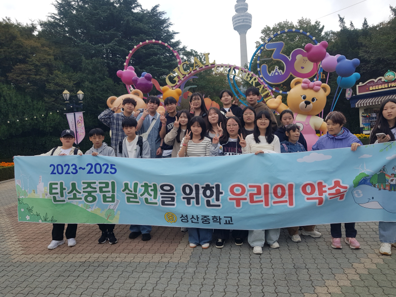 고령군 성산중학교는 지난 24일 전교생과 교직원이 함께하는 '2025년 탄소중립 생태전환 교육을 위한 사제동행 체험학습'을 대구 이월드에서 실시했다. 이번 체험학습은 교실을 벗어나 야외에서 탄소중립의 중요성을 깨닫고 생활 속 탄소 발자국 줄이기를 직접 실천하며 환경 감수성을 높이는 소중한 기회가 됐다. 이날 체험학습은 탄소중립 관련 교육을 시작으로, 일상생활에서 탄소 발자국을 줄일 수 있는 다양한 미션 수행 활동으로 이어졌으며 학생들은 선생님들과 조를 이루어 이월드 곳곳을 다니며 음식 남기지 않기, 쓰레기 분리배출 철저히 하기, 대중교통 이용 경험 나누기 등 탄소중립 실천 방안들을 체험하고 공유했다.
