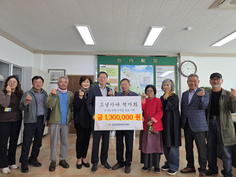 상주시 함창읍은 고녕가야 작가회에서 이웃들에게 따뜻한 마음을 전하기 위해 전시회 판매수익금 130만원을 ‘함께모아 행복금고’에 기탁했다고 밝혔다. 고녕가야작가회는 지역 예술가 10여 명이 구성되어 2022년부터 회원전을 개최하고 있으며 올해는 목공예·조각·압화·사진 등 작품 20여 점을 전시하여 지역 문화예술 확산에 크게 기여하고 있다. 이수재 회장은 “작품을 통해 얻은 수익을 지역의 어려운 이웃들과 나눌 수 있어 뜻깊다”며 “앞으로도 예술을 통해 따뜻한 지역 공동체를 만들어가겠다”고 했다. 주용덕 함창읍장은 “지역 예술인들의 따뜻한 나눔이 지역사회에 큰 울림을 주고 있다”며 “소중한 정성을 어려운 이웃들에게 잘 전달하겠다”고 전했다.