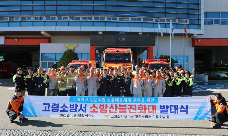 고령소방서는 지난 28일 고령소방서 대회의실에서 ‘소방산불진화대 발대식’을 성대히 개최했다고 밝혔다. 이번 발대식은 산불 발생 위험이 높은 지역 특성을 고려해 지역 주민의 생명과 재산을 보호하고 산불 대응 전문성을 강화하기 위해 마련됐다.소방 산불신속대응팀 3팀(25명), 의용소방대원으로 구성된 산불진화대는 총 4개팀으로 산불지원팀 2팀(60명), 산불기동팀 2팀(20명) 총 105명이 산불진화대원이 공식 임명됐다. 이들은 향후 산불 발생 시 신속한 초기 대응과 진압 활동을 수행하며 평상시에는 산림 순찰 및 예방 홍보 활동에도 적극 참여할 예정이다.이번 발대식에서는 ▲임명장 수여 ▲대원 선서 ▲산불진압 장비 시연 ▲기념촬영 등이 진행됐으며 대원들은 강한 책임감과 사명감을 가지고 지역 안전을 위한 활동에 나설 것을 다짐했다.임준형은 소방서장은 “산불은 초기 대응이 무엇보다 중요하다”며 “산불진화대의 출범으로 지역의 산불 대응 체계가 한층 강화될 것으로 기대한다”고 말했다.