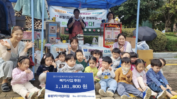 홀트아동복지회(회장 신미숙)는 지난 10월 24일(금), 산하시설 홀트수영종합사회복지관(관장 설은희, 부산광역시 수영구)이 동원1차 어린이집(원장 이희정)으로부터 지역 저소득계층 아동과 위기가정을 위한 후원금 1,181,800원을 전달받았다고 밝혔다.이번 후원금은 홀트아동복지회 창립 70주년의 특별한 의미를 기념하며 동원1차 어린이집(부산광역시 기장군 정관읍) 앞마당에서 열린 ‘아나바다(아껴 쓰고 나눠 쓰고 바꿔 쓰고 다시 쓰는) 장터’ 수익금 전액으로 마련됐다. 어린이집 교사와 학부모, 원생들이 각자의 소중한 물품을 내놓아 직접 판매한 수익금에 원생 대상으로 진행된 이미용 비용 기부, 교사와 원장의 후원금까지 더해져 더욱 의미 있는 기부가 되었다.동원1차 어린이집은 지난해에 진행한 아나바다 장터 수익금으로 2025년 1차 후원을 진행한 데 이어, 올해 수익금을 통해 2026년에도 2차 후원을 이어가겠다는 지속적인 나눔의 의지를 밝혔다.설은희 홀트수영종합사회복지관장은 “동원1차 어린이집의 정성과 사랑이 담긴 성금은 복지관의 다양한 복지사업, 특히 경제적으로 어려움을 겪는 아동과 위기가정의 긴급 지원에 소중히 사용될 예정”이라며 “아이들의 작은 손에서 시작된 나눔의 씨앗이 지역사회에 큰 희망으로 자라나도록 최선을 다하겠다”고 전했다.이번 기부는 금전적 후원뿐만 아니라 교육 현장에서 지역사회와의 연대와 나눔 및 환경보호의 가치를 실천한 뜻깊은 사례로 평가받고 있다. 일회성 행사가 아닌 지역사회 복지 증진을 위한 지속 가능한 파트너십이자 미래 세대에 나눔의 가치와 공동체 의식을 심어주는 모범 사례로 자리 잡을 것으로 기대된다.한편, 올해 창립 70주년을 맞은 홀트아동복지회는 위기가정아동, 자립준비청년, 한부모가족, 장애인과 지역주민, 해외 취약아동을 위해 전문 사회복지 서비스를 제공하는 NGO로, 다양한 캠페인과 복지사업을 통해 아동과 가족이 더 행복한 세상을 만드는 데 앞장서며 사회복지 증진에 기여하고 있다.