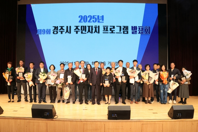 경주시는 3일 화랑마을 화랑전시관 내 기파랑관 및 기획전시실에서 ‘제9회 경주시 주민자치 프로그램 발표회 및 전시회'를 성황리에 개최했다.올해로 9회를 맞은 이번 행사는 주민이 주체가 되어 이룬 자치의 성과를 공유하고, 지역공동체의 힘을 하나로 모으는 시민 축제로 자리매김했다.행사는 경주시 주민자치연합회가 주관으로 열렸으며, 주낙영 경주시장을 비롯해 이동협 경주시의회 의장, 읍면동 주민자치위원, 강사, 수강생 등 500여명이 참석해 뜨거운 열기로 현장을 가득 채웠다.서면주민자치센터의 경쾌한 사물놀이 공연을 시작으로 라인댄스, 실버댄스, 색소폰, 난타, 고고장구 등 19개 팀이 무대에 올라 1년간 갈고 닦은 실력을 뽐냈다.또한 기획전시실에서는 불국동의 어반스케치, 건천의 수채화 등 수강생들의 수준 높은 작품들이 전시돼 관람객들의 눈길을 끌었다.특히 이날 행사에서는 ’2025 APEC 정상회의‘의 성공적인 개최를 기념하기 위한 대형 현수막 퍼포먼스가 펼쳐졌다.김재훈 경주시 주민자치연합회장은 “이번 발표회를 통해 각 읍면동 주민자치위원회 간의 교류와 협력이 더욱 활발해지길 바란다”며, “앞으로도 주민과 함께, 현장에서 답을 찾는 진정한 주민자치를 실현하겠다”고 밝혔다.주낙영 경주시장은 “주민 복리 향상과 공동체 활성화를 위해 헌신해온 주민자치위원 여러분께 진심으로 감사드린다”며, “APEC 정상회의의 성공개최는 경주시민 모두가 함께 만들어 낸 성과로, 이제는 그 경험을 바탕으로 시민과 함께 미래 경주의 새로운 비전을 그려 나가겠다”고 말했다.