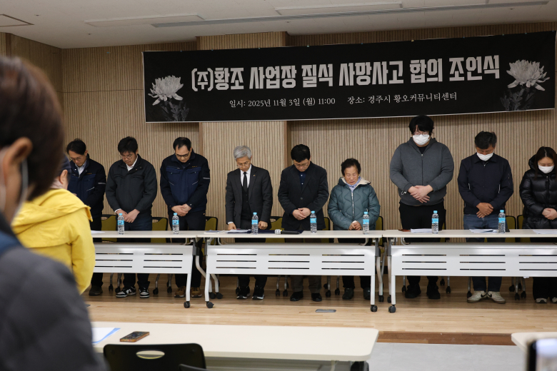 경주시 안강읍 소재 아연가공업체 (주)황조에서 근로자 3명이 숨진 사고와 관련해 도급업체와 하청업체가 3일 공식 사과했다.황조와 하청업체 관계자는 이날 오전 11시 경주 황오커뮤니티센터에서 기자회견을 열고 "안전에 대한 사회적 관심이 높은 상황에서 발생한 이번 사고에 대해 그 책임이 전적으로 저희에게 있음을 인정하고 무거운 책임을 통감한다"고 밝혔다.이들은 "안전에 대한 예방조치를 다하지 못해 사고를 막지 못해 유가족과 국민 여러분께 고통과 심려를 끼쳐 참담한 심정"이라며 "앞으로 중대재해가 발생하지 않도록 재발방지대책을 수립하고 안전 최우선 경영에 매진하며 유가족과 생존자가 조속히 일상으로 복귀할 수 있도록 지원을 아끼지 않겠다"고 말했다.지난달 25일 오전 11시 31분께 황조의 저수조에서 배관 작업을 하던 하청업체 작업자 4명이 쓰러져 3명이 숨졌고 1명이 중태에 빠졌다가 회복 중인 상황이다.이 자리에서 관계자들은 3명의 유족과 손해배상금 지급이나 재발방지대책 결과보고서 제공 등과 관련해 합의하고 유족과 법무법인 두율 관계자가 참여한 가운데 조인식을 했다.다만, 유족 대표는 "중소기업 경영인의 현실적 어려움, 남은 근로자들의 생계를 깊이 헤아려 크게 양보했다"며 "하지만 이런 합의가 법적 책임을 면제하는 것은 아님을 분명히 밝힌다"고 강조했다.