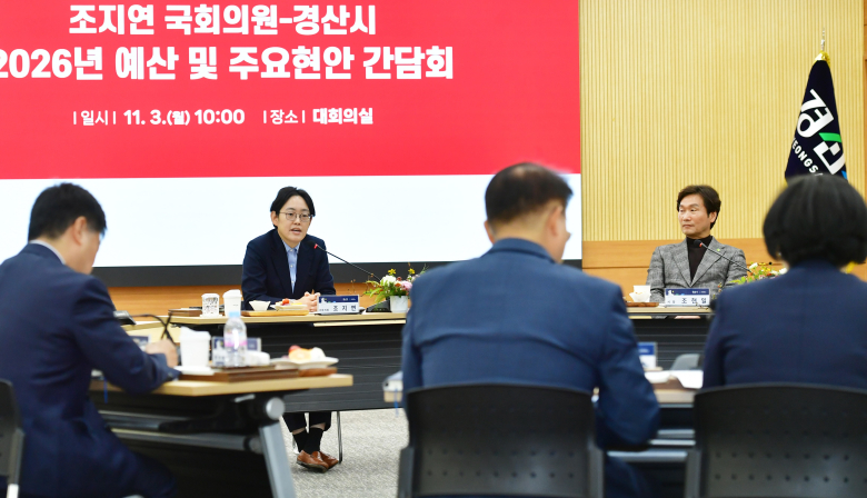 경산시는 지난 3일 시청 대회의실에서 조지연 국회의원과 간담회를 개최하고 2026년 정부 예산 확보 및 주요 시정 현안 사업에 대한 긴밀한 협력 방안을 논의했다.이번 간담회는 시민 삶의 질 향상과 지역 균형발전을 위한 핵심사업을 공유하고 국회와 중앙부처 예산 심의 단계에서 실질적인 반영을 이끌어 내기 위한 긴밀한 협력 체계를 구축하는 데 초점을 뒀다.이번 간담회에서는 ▲임당유니콘파크 조성 ▲현대프리미엄아웃렛 추진 현황 ▲자인노인복지관 건립 ▲대구 도시철도 1, 2호선 순환선 구축 ▲하·폐수처리시설 지하화 사업 등 현재 추진 중인 주요 사업에 대해 설명하고 협력 사항에 대한 심도 있는 논의가 이뤄졌다. 또한 올해 정부 예산안에 미반영된 13개 사업(총 481억 원)의 국비 추가 확보 방안을 논의하고 해당 사업들이 국회 심의 과정에서 반영될 수 있도록 조지연 국회의원의 적극적인 지원을 요청했다.조지연 국회의원은 "오늘 논의된 현안 사업들이 경산 발전의 마중물이 될 것으로 기대한다"며 "주요 사업들이 차질 없이 진행될 수 있도록 국회 예산 심의 과정에서 끝까지 챙기겠다"고 말했다.조현일 경산시장은 “정부 예산 확보에 최선을 다해주시는 국회의원께 감사하다”며 “시민들이 체감하고 지역발전을 선도할 수 있는 사업들이 차질 없이 추진될 수 있도록 총력을 다하겠다”고 말했다.
