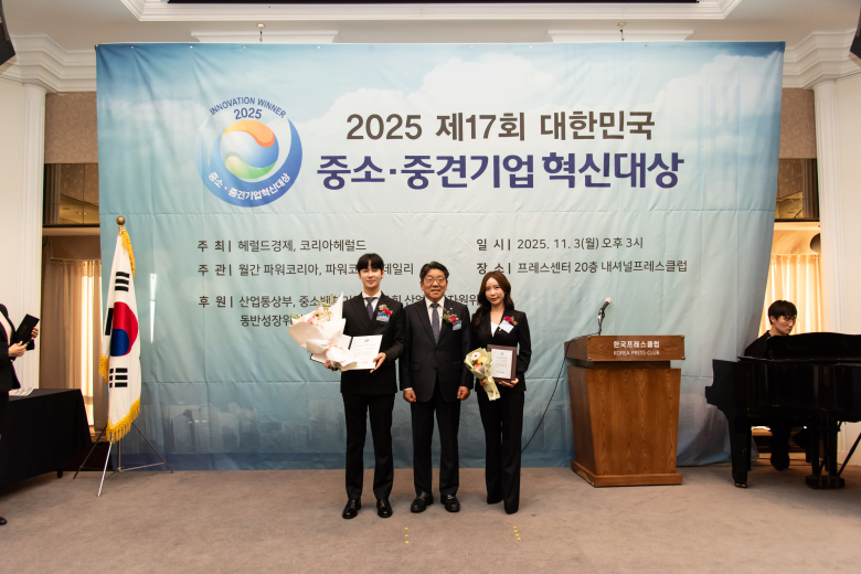 이음터부동산중개·이음터인테리어(대표 이승재, 조수연)가 11월 3일 개최된 ‘2025 제17회 대한민국 중소‧중견기업 혁신대상’에서 ‘헤럴드 미디어 그룹 대표이사상-부동산중개·인테리어 부문 대상’을 수상했다고 밝혔다. ‘대한민국 중소‧중견기업 혁신대상’은 헤럴드경제, 코리아헤럴드가 주최하고 월간파워코리아(발행인 백종원)가 주관하는 시상식으로 헤럴드 미디어 그룹이 차세대 성장 동력의 원천이자 선진한국 창조의 주역이 될 중소‧중견기업을 발굴, 격려하기 위해 제정됐다. 한국프레스센터에서 진행된 이번 시상식에서는 ▲산업통상부 장관상에 주식회사 시스템테크, 유석토건 주식회사, 삼호글로벌 주식회사, ㈜모닝라이프, ㈜대웅이티, 더케이저축은행 주식회사 ▲중소벤처기업부 장관상에 주식회사 올비젼, 주식회사 성창환경, ㈜알리닥, ㈜알카나인을 선정했으며 ▲동반성장위원회 위원장상에는 경기도, 경상남도버스운송사업조합, ㈜젠요가, (재)세종창조경제혁신센터를 선정했다.또한 ▲중소벤처기업진흥공단 이사장상에는 ㈜이노핸즈, 주식회사 엠스톤물산, 디케이랩(주), 주식회사 에코패키징솔루션, 쿱모빌리티 주식회사를 선정했고 ▲국회 산업통상자원중소벤처기업위원회 위원장상에는 세무법인 한림, ㈜핫시즈너가 선정됐다.이밖에도 ▲헤럴드 미디어 그룹 대표이사상에 부산시 사상구, 김포파주인삼농협, GS리테일, ㈜임샤인/스테이션비, 주식회사 다양성, 비담상조, ㈜헤이김, 하이다이아, 비코빅, 플로트(주), 엘에이티유학원, 김연희의 림프연구소, ㈜미르, ㈜에이제이랩, 고탐정사무소, 아이스토리 대연점, 까리노디자인, 더플러스그룹, 이음터부동산중개·이음터인테리어, 테너 안혜찬, 소프라노 예이나 등 모두 42여 개의 기업/기관/인물/브랜드가 선정됐다. 이 행사는 김세영 아나운서의 사회, 센세이션엠에스 이승재 대표의 연주, 테너 안혜찬‧소프라노 예이나의 축하공연으로 진행됐다.