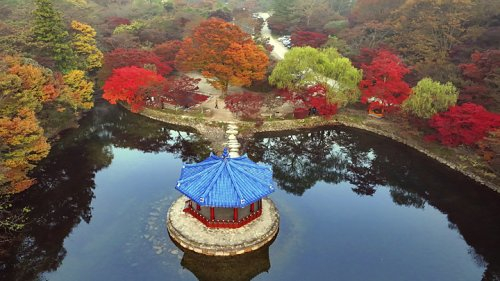 7일 전북 정읍시 내장산에서 단풍이 물들어가고 있다. 정읍시는 내장산 단풍이 다음 주(10∼16일) 절정에 이를 것으로 예상했다. 정읍시 제공.