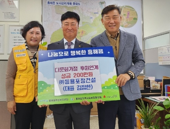 포항시 북구 흥해읍의 지역기업 ㈜등용포장건설(대표 김정한)이 13일 관내 다문화 가정을 위해 200만 원을 후원했다.이번 후원금은 생활에 어려움을 겪고 있는 다문화 가정의 생활비와 세 자녀의 교육비로 사용될 예정이다.김정한 대표는 “지역의 다양한 구성원이 함께 어우러져 살아가는 사회를 만드는 것이 기업의 중요한 역할이라고 생각한다”며 “앞으로도 지역 사회와 상생할 수 있는 나눔 활동을 꾸준히 이어가겠다”고 말했다.후원금을 전달받은 도모 씨(46·흥해읍 중성리·필리핀 출신)는 “남편의 장애로 경제적으로 힘든 상황이었는데 큰 도움이 됐다”며 “아이들의 겨울옷과 학용품을 마련할 수 있어 감사하다”고 전했다.이문형 흥해읍장은 “지역기업의 따뜻한 손길이 다문화가정에 큰 힘이 되고 있다”며 “후원금이 실질적인 도움이 될 수 있도록 전달하겠다”고 밝혔다.한편 ㈜등용포장건설은 지난해에 이어 올해 두 번째로 다문화가정 지원 후원을 이어오며 지역사회 나눔 실천의 모범이 되고 있다.