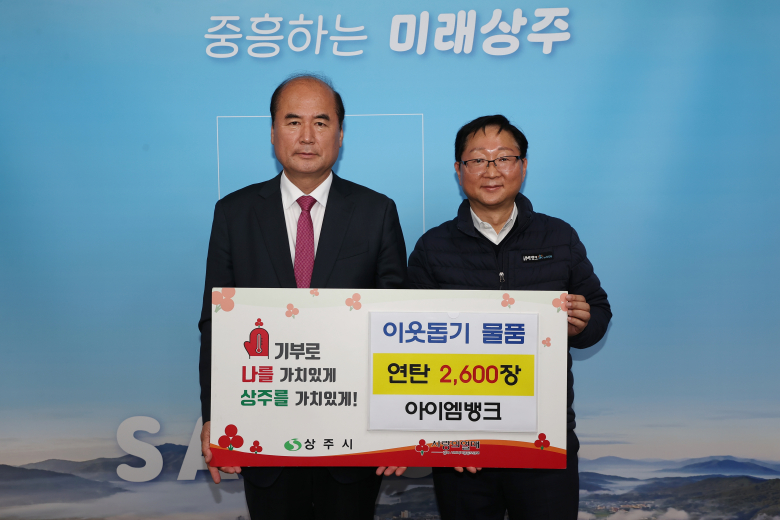 아이엠뱅크 상주지점은 지난 13일 상주시청을 방문해 연탄 2600장(약 200만원)을 기탁했다. 기탁한 연탄은 지역 저소득층 가정 13가구에 각 200장씩 지원될 예정이다. 아이엠뱅크 상주지점은 매년 꾸준히 연탄나눔을 이어오며 지역사회 나눔문화 확산에 앞장서고 있다. 신진광 상주지점장은 “작은 정성이지만 어려운 이웃들이 따뜻한 겨울을 보낼 수 있기를 바란다”며 “앞으로도 지역과 함께하는 금융기관으로서 사회공헌활동을 지속해 나가겠다”고 했다. 강영석 상주시장은 “매년 변함없이 나눔을 실천해주시는 아이엠뱅크 상주지점에 진심으로 감사드린다”며 “기탁된 연탄을 어려운 이웃에게 따뜻한 마음과 함께 잘 전달하겠다”고 밝혔다.