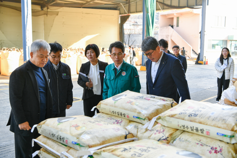 영주시는 지난 10월 실시한 2025년산 공공비축미 산물벼 매입에 이어 11월 14일부터 12월 31일까지 안정면과 부석면을 시작으로 건조벼 매입을 진행한다.건조벼 매입 시작에 맞춰 유정근 영주시장 권한대행은 첫 수매가 진행된 영주연합농협 미곡처리장을 방문해 농업인과 관계자들을 격려하고 현장 의견을 청취했다.올해 영주시의 공공비축미 매입 계획량은 40kg 포대 기준 총 7만668포로, 산물벼 2만2228포, 건조벼 4만8440포를 매입할 예정이다.매입 품종은 ‘일품’과 ‘삼광’ 두 품종이며 타 품종이 20% 이상 혼입될 경우 향후 5년간 공공비축미 매입 대상에서 제외된다. 이에 따라 시는 농업인들에게 품종 관리와 확인에 각별한 주의를 당부했다.공공비축미 매입가격은 통계청이 조사하는 수확기(10~12월) 전국 평균 산지 쌀값을 조곡(40kg) 기준으로 환산해 결정된다.농가의 부담을 덜기 위해 수매 즉시 40kg 포대 기준 중간정산금 4만 원을 지급하며 최종 매입가격이 확정되는 12월 말에 나머지 정산금을 추가로 지급한다.유정근 권한대행은 “양질의 쌀을 생산하기 위해 어려운 여건 속에서도 각고의 노력을 다해주신 농업인들의 수고에 진심으로 감사드린다”며 “안정적인 쌀생산 여건 조성과 우수한 품질의 쌀생산 지원을 위해 최선을 다하겠다”고 말했다.