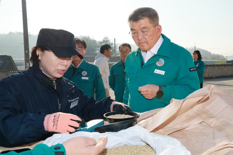 공공비축미 매입현장을 방문한 김학동 군수는 “지난 여름의 폭염 등으로 어려운 상황에도 수확의 결실을 맺은 농업인들의 노고에 감사드리며 좋은 결과가 나오길 바란다”고 농민들을 격려했다.