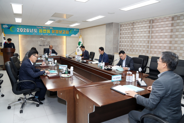 상주시는 17일부터 18일까지 시청 소회의실에서 강영석 상주시장 주재로 ‘2026년도 읍면동 운영보고회’를 개최했다.보고회는 각 읍면동장의 지난 성과와 2026년도 읍면동 운영 방침 및 운영 목표를 청취하고 각종 지역현안과 지역동향, 건의사항에 대해 질의하고 답변하는 소통의 시간으로 진행됐다. 각 읍면동이 내년 자체적으로 추진 예정인 시책들과 지역의 주요 현안 사업에 대해서 공유하고 지역맞춤형 정책과 주민들이 체감할 수 있는 행정서비스에 대해 함께 고민하는 시간이 됐다. 강영석 상주시장은 “중흥하는 미래상주로 도약하기 위해서는 직원 상호 간의 유기적인 협력이 필요하며 상주시청의 모든 직원이 한마음 한뜻이 되어 소통하면 ‘Again, 경상의 꿈-상주’의 목표를 이룰 수 있다”며 “앞으로도 시민 편익 증진과 시의 미래를 위해 일선 현장에서 노력하는 직원들의 소리에 귀 기울이고 공유할 수 있는 자리를 지속적으로 가지겠다”고 했다.