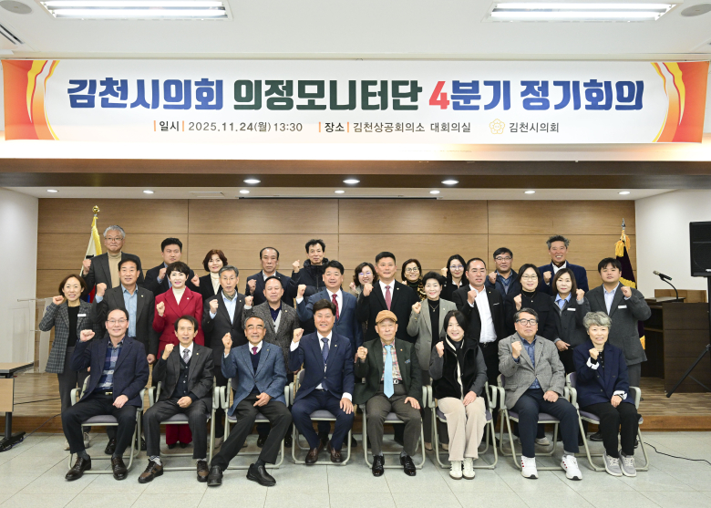 김천시의회는 지난 24일 김천상공회의소 대회의실에서 의정모니터단 4분기 정기회의를 개최했다. 이번 정기회의는 나영민 의장과 시의원, 김덕희 단장과 박화용 부단장을 비롯한 모니터단 30여 명이 참석한 가운데 향후 운영계획과 제안 사항 처리 현황을 논의하고 현장 모니터링 활동을 실시하는 순으로 진행됐다. 이날 회의에서는 의정모니터단이 제출한 제안·건의사항의 추진 현황을 비롯하여 지역 불편 개선 의견, 조례와 예산 등 다양한 사안에 대한 의견이 공유됐다. 또한 의회운영·의회홍보·행정복지·산업건설 각 분과위원회의 활동 실적과 운영 개선 방향에 대한 논의도 이어졌다. 이어 모니터단원들은 김천시의회 본회의장에서 진행 중인 청소년 의회교실 현장을 방문해 모니터링을 실시했다. 이번 모니터링을 통해 지방의회 운영에 대한 이해를 높이고 의정 활동 전반에 대한 관심과 참여의 폭을 넓히는 계기를 마련했다. 나영민 의장은 “의정모니터단은 시민의 시각에서 의정활동을 살피고 소통하는 중요한 동반자”라며 “시민의 목소리가 의정으로 이어질 수 있도록 앞으로도 열린 의정을 실천하겠다”고 말했다. 한편 제1기 의정모니터단은 지난 1월 출범 이후 분기별 회의와 모니터링 활동을 이어오며 의정 발전에 실질적인 기여를 하고 있다.