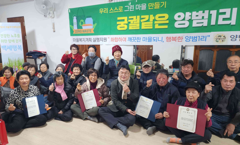 상주시 이안면은 지난 8일 양범1리 마을회관에서 주민 30여 명이 참석한 가운데 마을복지계획(백세행복) 실행 평가회를 개최했다. ‘백세행복’은 이안면과 상주시 이웃사촌복지센터에서 주관하고 양범1리 주민 스스로 마을복지계획을 수립하여 실행한 프로그램이며 주민들의 건강증진과 공동체 강화에 목적을 두고 주 1회 이안초등학교 운동장 걷기 활동과 우천시 마을회관 실내 체조를 운영해 왔다. 이번 평가회는 ▲프로그램 활동 영상시청 ▲만족도 조사 ▲지역공동체의식 척도검사 ▲참여자 시상식 등으로 진행됐다. 특히 꾸준히 참여한 주민들에게 개근상(4명), 우수상(2명)의 시상이 이뤄져 참석자들의 큰 박수를 받았다. 김호웅 이안면장은 “양범1리 주민 여러분의 꾸준한 참여와 공동체를 위한 노력에 깊이 감사드린다”며 “앞으로도 주민 스스로 건강을 지키고 행복한 마을을 만들어가는 데 면에서도 적극 지원하겠다”고 했다.