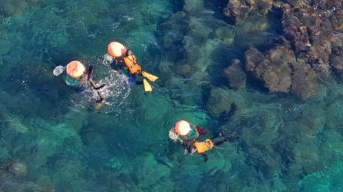 10일 오전 제주시 한경면 판포리 앞바다에서 해녀들이 조업하고 있다. 연합