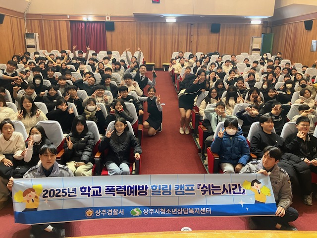 상주경찰서와 상주시청소년상담복지센터는 지난 9일 초·중학생 340여명을 대상으로 청소년 학교폭력 예방 연극 ‘쉬는시간’을 실시했다.연극은 학교폭력을 주제로 방관자의 시점에서 바라보며 진행되어 학생들의 공감을 이끌었으며 학생들이 직접 무대로 올라가 공연에 참여를 하여 집중력 또한 높았다.한 학생은 연극을 보고 "연극 속 상황이 내 친구에게 일어날 수 있다는 생각이 들었다"며 "앞으로 친구들에게 관심을 갖고 도움을 주겠다"고 했다.상주경찰서 김진수 서장은 ‘2026년에도 청소년 유관기관과 지속적인 협업으로 학교폭력·사이버불링 없는 안전한 등·하굣길을 만들어가겠다’고 했다.
