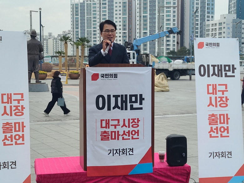 이재만 전 자유한국당 최고위원은 16일 오후 동대구역 광장에서 기자회견을 열고 내년 지방선거 대구시장 출마를 공식 선언했다.이 전 최고위원은 ” 다시 자부심을 갖고 살수 있는 대구의 역동적인 출발을 시작하겠다”며 “그동안 동대구복합환승센터, 이시아폴리스 등 대형 국책사업을 추진한 경험을 토대로 말이 아닌 실적으로 증명하겠다”고 강조했다.특히 “통합신공항 사업을 시정 제1과제로 삼고 첫삽을 뜨고 관광산업 개발과 소상공인 지원, 세금혜택 조례, 국책사업 유치를 통한 반도체·바이오 산업을 육성하겠다”면서“기업유치와 부동산 개발 사업을 통해 대구신항공항 사업의 가치를 향상시키겠다”고 공약했다.이어 “세계 어디든 찾아가는 세일즈 시장이 되겠다”며 “대구에 세금혜택 등 조례를 마련하고, 국책사업 유치를 통해 반도체와 바이오를 양대 축으로 대구의 미래 청사진을 그리겠다”고 제시했다.여기에다 “많은 음해와 공격에도 당당히 제 자리를 지키며 이재명 정부와 민주당의 독재에 싸워왔다”며, “최근 이재명 정부가 추진한 ‘헌법존중정부혁신TF’의 반민주적 행태에 따라 이재명 대통령과 김민석 국무총리를 경찰에 고발했다”고 언급했다.이재만 전 최고위원은 지난 2006년과 2010년 지방선거에서 대구 동구청장으로 당선됐고 지난 2014년, 2018년 지방선거에서는 대구시장 선거 출마 선언을 했으나 경선에서 탈락했다.