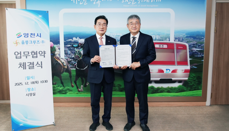 영천시는 18일 시청 시장실에서 울릉크루즈㈜와 상호 관광교류 활성화 및 시민 관광복지 증진을 위한 업무협약을 체결했다.울릉크루즈는 포항과 울릉도·독도를 오가는 여객선을 운항하는 해상 관광 전문 기업으로, 이번 협약은 내륙 중심 도시 영천과 동해 대표 해양 관광지를 연결하는 상생형 관광 협력이라는 점에서 의미가 있다.협약에 따라 영천시민은 울릉크루즈 여객선 이용 시 최대 20%의 운임 할인 혜택을 받을 수 있다. 특히 영천시는 철도와 고속도로가 연결되는 내륙 교통 요충지로, 이번 협약을 통해 영천 포항 울릉으로 이어지는 관광 이동 동선이 더욱 강화될 것으로 기대된다.울릉크루즈는 선내 홍보 공간과 온·오프라인 채널을 활용해 영천의 주요 관광지와 사계절 축제, 특색 있는 지역 자원을 적극 홍보할 계획이며, 양 기관은 공동 마케팅과 상호 홍보를 통해 실질적인 관광객 유입 확대를 추진한다. 아울러 양측은 단순 할인 혜택을 넘어 영천 관광자원과 연계한 공동 관광상품 개발과 지역 상생형 관광 콘텐츠 협업도 추진할 계획이다.시 관계자는 “이번 협약은 영천의 지리적·교통적 강점과 울릉도의 해양 관광 자원을 연결하는 실질적인 상생 모델”이라며 “앞으로 울릉크루즈와 협력하여 양 지역 간 관광상품 개발 및 교류 활성화를 지속 추진하겠다”고 밝혔다.
